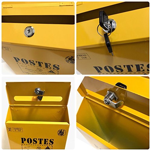 (hanatura) メールボックス 鍵付き 郵便ポスト アンティーク 調 郵便受け (イエロー)
