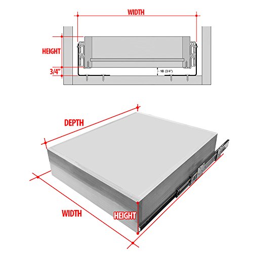 キャビネットボックス、Poplar木製引き出しボックスwithソフト閉じるスライドとブラケット Width: 22" DRWRbox-MD5-WD/Poplar-22W24D3H-3/4T