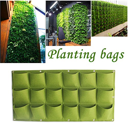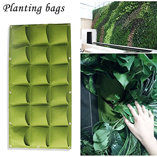プランター フェルト 植物栽培バッグ 壁掛け式 植物育成バッグ 植栽バッグ フェルトプランター 園芸 植物 野菜 植栽バッグ 収納ポケット 植え袋 不織布 鉢 栽培用 園芸用 ガーデン 庭 室内 通気性 グリーン (18ポケット)