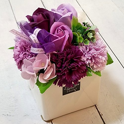 Airyus ソープフラワー フレグランス 石鹸の花 枯れない フラワーギフト 陶器入り アレンジメント (パープル)