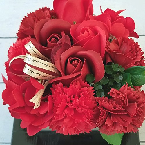 Airyus ソープフラワー フレグランス 石鹸の花 枯れない フラワーギフト 陶器入り アレンジメント (レッド)