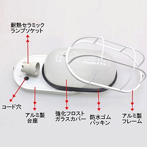 - サイズ(約):長さ21cm×横幅10.5cm×高さ9cm 口金サイズ:E27(E26) 素材:アルミニウムフレーム、ガラス製カバー、耐熱セラミックランプヘッド (カラー:黒(ブラック)・白(ホワイト) セット内容:マリンライト本体、ネジ・ネジカバー4本付属、テスト用LEDランプ付属(5W)