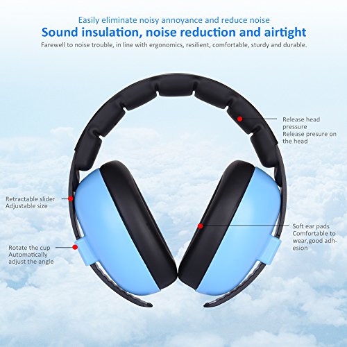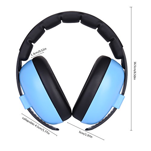 hjuns-Wu 3色 防音イヤーマフ 遮音値27dB プロテクター フリーサイズ 折りたたみ型 大人・子供兼用 自閉症 聴覚過敏 騒音対策 聴覚保護 勉強等様々な用途に ブルー