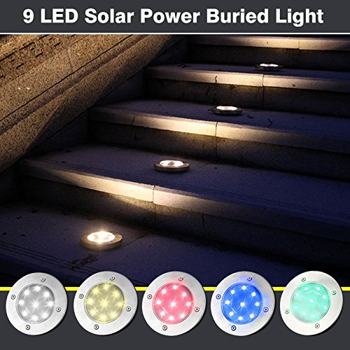 hjuns-Wu 5色光源 九つLED電球 埋め込み式 ガーデンライト 地上ランプ 屋外光路庭装飾 埋め込み式防水ライト 防犯ライト ガーデン、庭、芝生、公園に適うアウトドア用ライト D:青色光