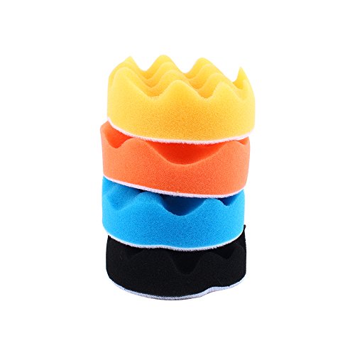 ポリッシャー スポンジ セット 交換 バフ パッド 洗車やワックス 垢取り 傷磨き 塗装 作業用 5サイズ選べる 80mm 100mm 125mm 150mm 180mm 波型スポンジ 4個入 (4"-100mm)