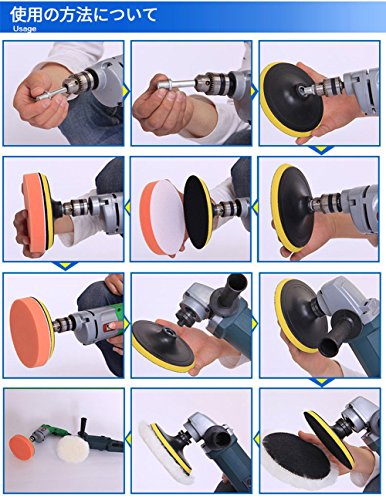 - 【簡単に取り付け】マジックテープ式で脱着する便利なポリッシング7点セットです。取り付け簡単、マジックテープ式で脱着する便利なポリッシングセット。電動ドリルやグラインダーに取り付け可能。