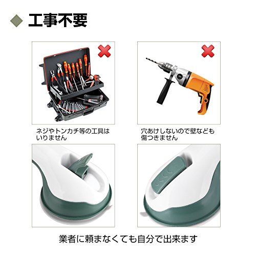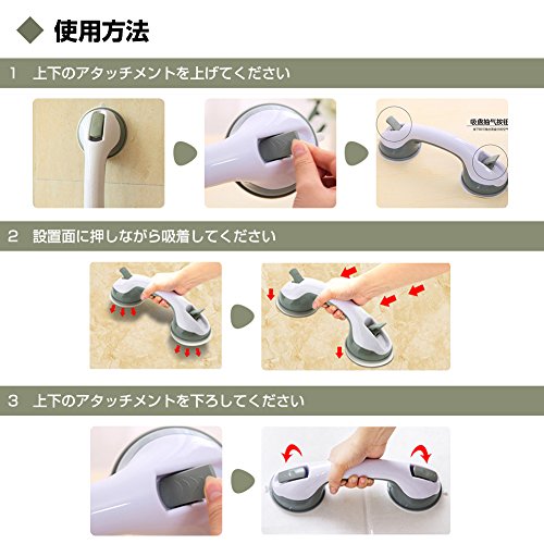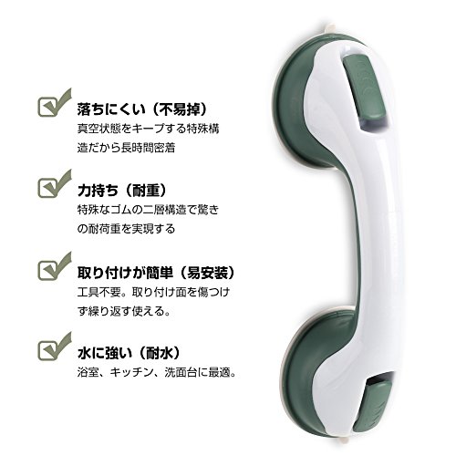 - 【循環利用】この手すり吸盤ばプレミアムプラスティックを採用されで、耐水性、耐久性があり、長い間使用しても変形していません。強力吸盤で、長期間の使用しても超強力な把持力があります。簡単に外れるなんかのことが心配する必要がないです。取り外しも簡単で、また再利用が可能です。