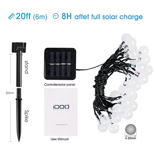 Solar Outdoor String Lights, iDOO 20ft 30 LED Frozen Raindrops Pattern Fairy Solar String Lights for Outside Decor, Patio Roof, Balconies, Arbor, Wedding, Halloween party and etc - Multi Color [並行輸入品]