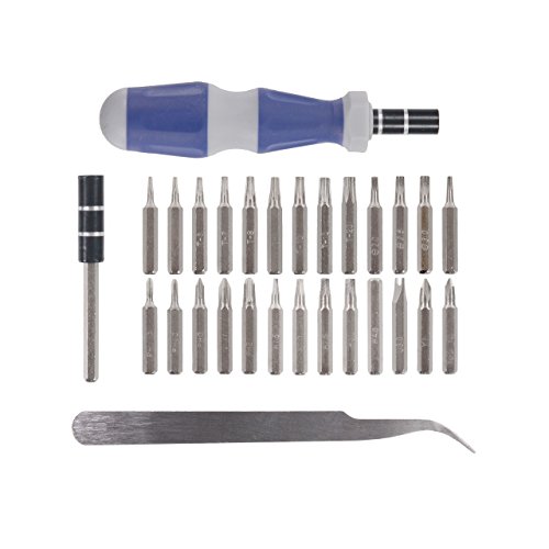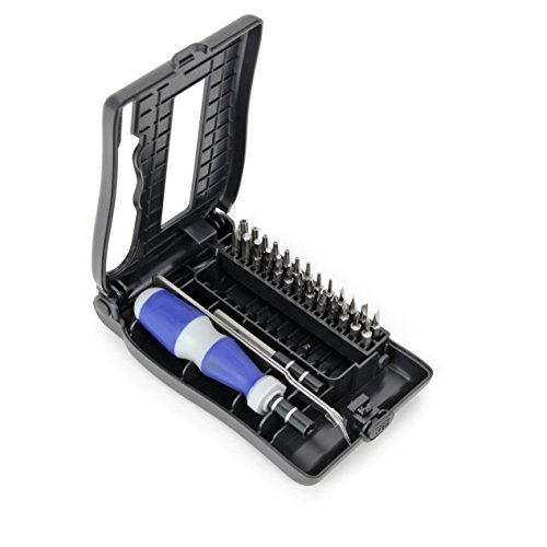 - Includes 4mm driver handle, 26 bits, extension, and tweezers in a compact case.