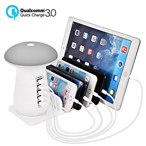 Multi usb Charger Station Popwinds Charging Organizer 5 Port Led Mushroom Lamp Light for iPhone 6/7/8/X Android SmartphonesTablets and Other Cell Phone USB Hub Stand Charging Docking Station [並行輸入品]