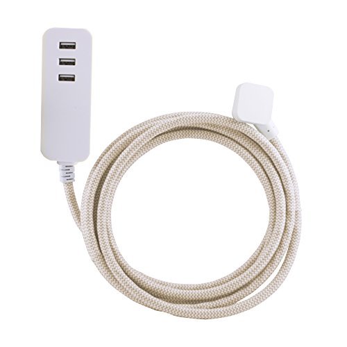 Cordinate Designer 3-USB Charging Extension Cord with Surge Protection Brown Braided D?cor Fabric Cord 10 ft Low-Profile Plug 3.4A USB Charging Ports for up to 40% Faster Charging 37922 [並行輸入品]