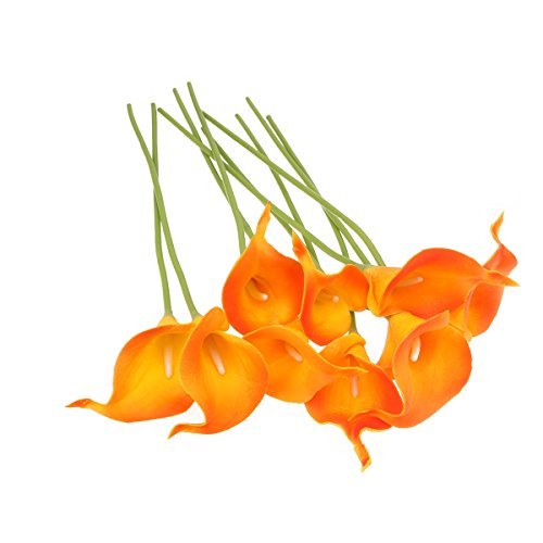Tinksky 10pcs Elegant Lifelike Real Touch Artificial PU Calla Lily Flower Bouquets Bridal Wedding Flower Bouquets (Orange) [並行輸入品]