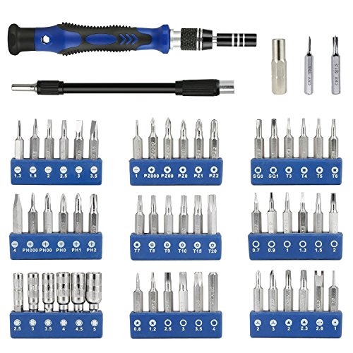 - パッケージに含まれるもの: 61 in 1 精密ドライバーセット,2*プラスチックオープナー,3*静電防止ピンセット,1*ユーティリティナイフ,1*静電防止リストストラップ,1*SIMピンと吸引カップ,6*三角柱,2*プラスチックこじ開けバー,3*メタルこじ開けバー,1*錫スクレーパー,1*大型プラスチックの二重の開口ツール,1*磁化および消磁ツール,2*磁気保護マット,1*清掃布。