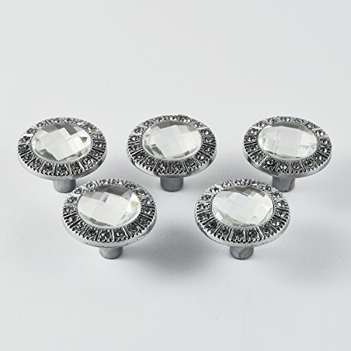iQualite 5点30 mmラウンドプルハンドルキラキラとラインストーンのノブ食器棚引き出し戸棚など シルバー ERPD006