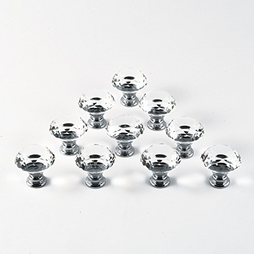 Used for cabinet,drawer,chest,bin,dresser,cupboard etc. iQualite 10pcs 30mm Glass Clear Cabinet Knob Drawer Pull Handle Kitchen Door Wardrobe Hardware Used for Cabinet, Drawer, Chest, Bin, Dresser, Cupboard, Etc Crystal