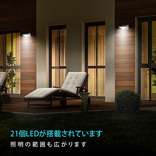 ソーラーライトは21LEDライトを備えますので、最大ルーメン数は330で、より明るく、照明の範囲も広くなります。 明るさで、防犯機能も期待できます。