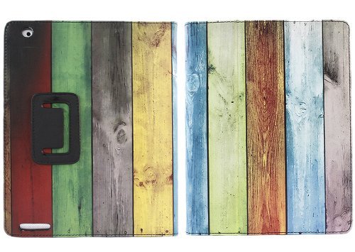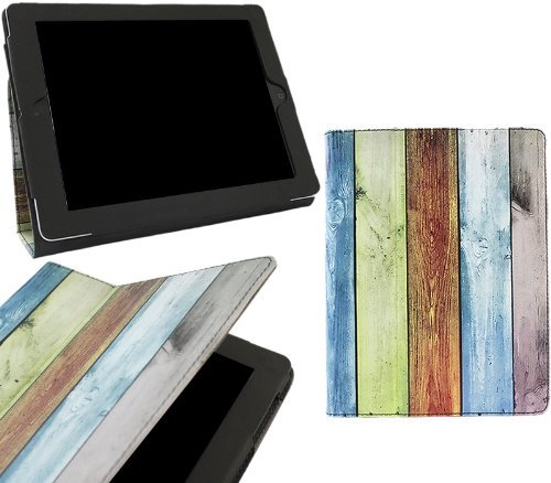 iTALKonline PADWEAR WOODEN RAINBOW BLUE GREEN BROWN GREY Multi Function Multi Angle Luxury Executive Wallet Stand Cover Typing Case with Magnetic Sleep Wake Sensor Feature For Apple iPad 2 (2011) 2nd generation iPad 3 "The New iPad Retina Display" (2012) 3rd Generation (Wi-Fi and Wi-Fi + 3G) 16GB 32GB 64GB [並行輸入品]
