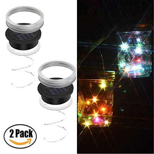 ソーラーストリングライト iThird 2パック 10 LED メイソンジャーライト ワイドマウス 蓋に挿入 防水 クリスマス/パーティー/結婚式等に室内装飾/室外装飾用 雰囲気 ライト(ジャー含まない) (マルチカラー)