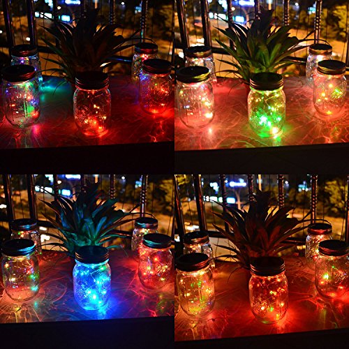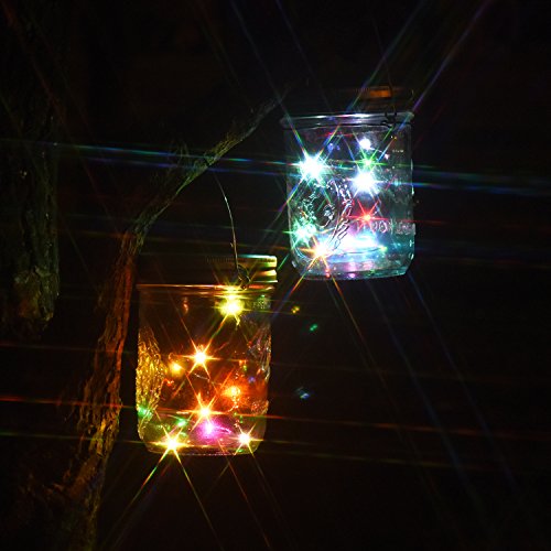 - 【蓋に挿入するメイソンジャーソーラーライト】蓋に挿入するメイソンジャーソーラーライトは口径が85ミリメートルのメイソンジャーに適用します。ストリングライト付きのソーラーパネルは蓋に挿入します。暗くになると、スイッチをつけて、10LED ライトはカラフルにピカピカします。(ジャーとハンガーは含ない)