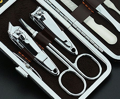 iZaphor(TM)PUレザーで(TM)プロフェッショナルネイルツールステンレス鋼のマニキュアペディキュア耳掻きネイルクリッパーセット7で1ケース