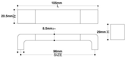 1 ) 96 mm : L - 105 - W , 20.5 , h-29 , t-8.5 , mm