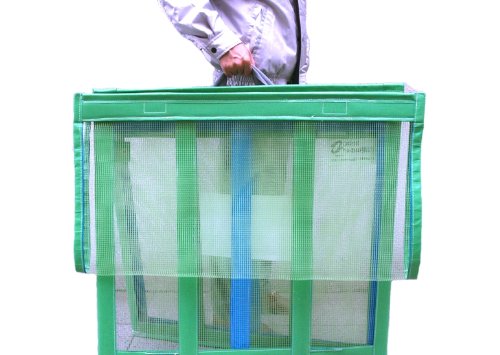 ペットボトルをリサイクルして作られたゴミ置き場の折りたたみカラスよけ商品。軽量化されているので持ち運び、収納は簡単で使いやすい。環境を考慮し、再生ネットを使う事によりエコロジカルな観点から地域住民の方に理解を得やすい 商品です。