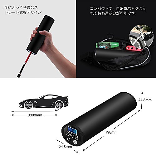 - 【シガーソケットとコンセント充電】電源はシガーソケットが対応しているのほか、家庭のコンセントからの充電も可能です。また、先に充電してから、コードレスで空気補充できます、コードのトラブルを気にすることなく、どこでもいつでも使用できます。