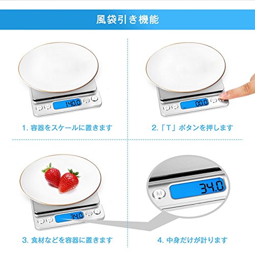 - 【高精度0.1g-3kg】0.1g単位で3000gまで計量可能。法定計量単位はgです。高感度センサーで、精度が高いです。