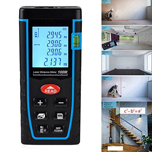 ieGeek レーザー距離計 携帯型 最大測定距離100m 距離 面積 体積 容積 ピタゴラス(辺測定) 連続測定 一発測定 LCDデジタル表示 IP54防水 自動計算 (T-100M)