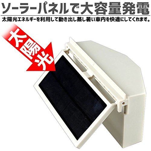 - 車内の熱気やタバコ・ペットの臭いも吸いこんで、素早く換気♪ソーラーパワーを利用しているので、車のエンジンを切っていても、 太陽の光が当たれば使用する事ができます。