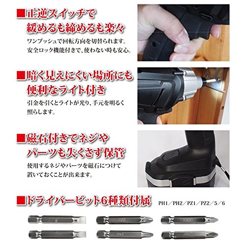 - ライト付きだから、暗くて見えにくい場所でも作業がはかどります。 6種類のドライバーセットを付属しています。