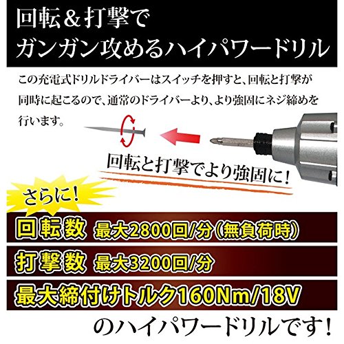 iimono117 インパクトドライバー パワフル 充電式 コードレス HRN-236 / 1年保証 18V 150Nm 回転 打撃 電動ドライバー ドリルセット