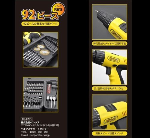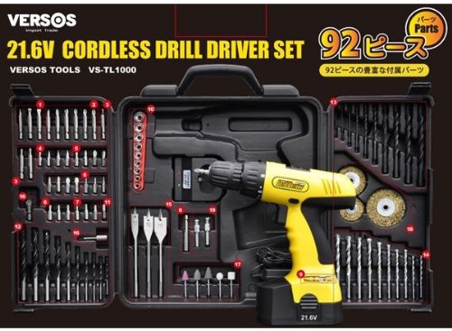 iimono117 ベルソス VERSOS 21.6V コードレス 電動ドリル ドライバー 92点セット TL-1000 / 充電式 電動ドリルドライバー 電動ドリル 電動工具 電動ドライバー 日曜大工 DIY 充電ドリル スクリュードライバー 92ピース