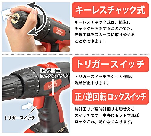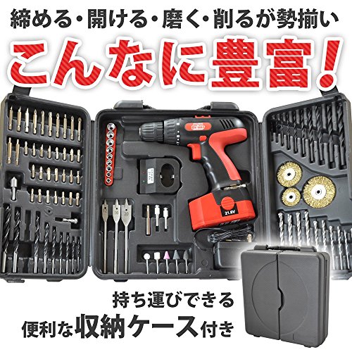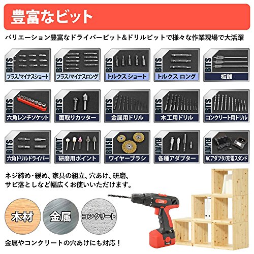 iimono117 電動ドリル ドライバー 21.6V & 92パーツ / コードレス電動ドライバー 充電ドリル スクリュードライバー 工具 充電ドライバー (レッド)