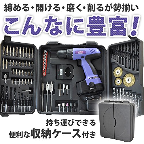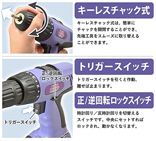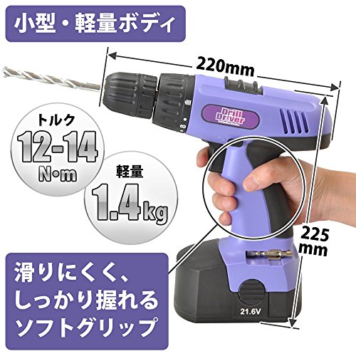 iimono117 電動ドリル ドライバー 21.6V & 92パーツ パープル AL-02BP / コードレス電動ドライバー 充電ドリル スクリュードライバー 工具 充電ドライバー