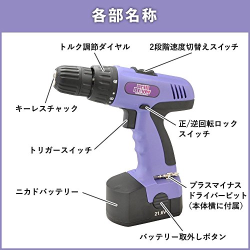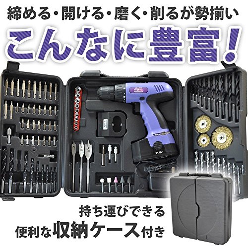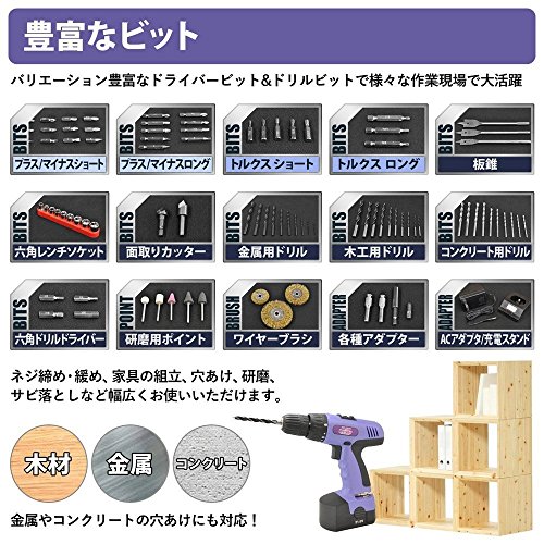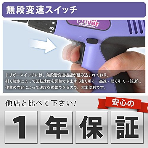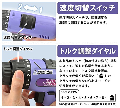 iimono117 電動ドライバー 21.6V & 92パーツ / 【 1年保証付 】電動ドリル ドライバードリル 電動工具 充電ドライバー ドライバーセット (パープル)