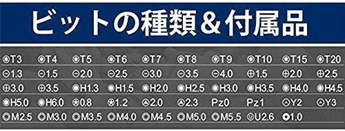 - 53種類のビットは、通常のプラス・マイナスはもちろん、 星型や三角、Y型といった特殊な形状も揃っており、 精密機械や電子機器の内部に使われているネジにも広く対応します。