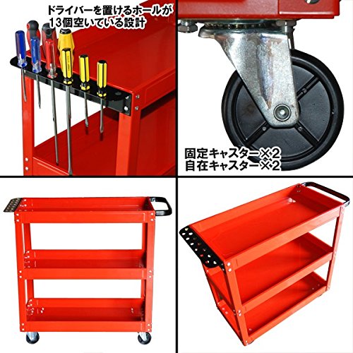 iimono117 3段 工具カート ドライバーホール キャスター 付き / ツールワゴン 工具ワゴン ツールカート 工具入れ ツール カート 整備用ワゴン ワーキングカート 工具棚 工具収納ワゴン
