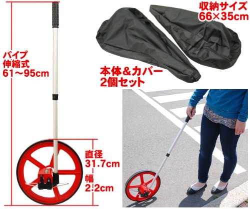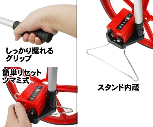 iimono117 歩行用 距離測定器 / ロードメジャー ロードカウンター ウォーキングメジャー 収納カバー付き ローラー距離計 一輪 大径 シングル車輪 直 線 曲線 伸縮式 片手 スタンド 10cm単位 6桁 カウンター表示 簡単 建築 土木 造園 日曜大工 陸上競技