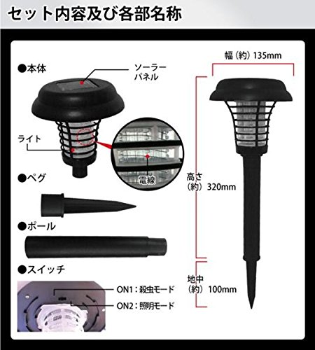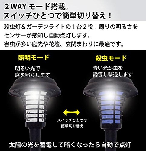 iimono117 2WAY ソーラー殺虫ライト / 電撃殺虫 殺虫機 ガーデンライト 殺虫 足元 ライト 庭 玄関 虫よけ 殺虫ライト ソーラー充電 自動点灯 電源不要 夜間照明 照明