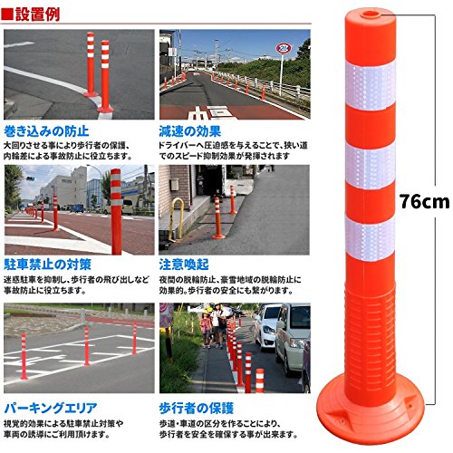 iimono117 車線分離標 コーンポスト 76cm / ガイドポスト 反射 ポールコーン ガードコーン 視線誘導標 駐車場 目印 (6本セット)