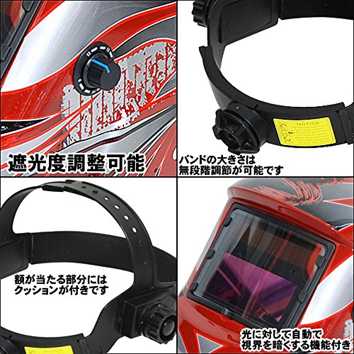 iimono117 溶接マスク 自動遮光溶接面 (レッド×トライバル) / 溶接面 遮光速度 1/30,000秒 アーク TIG 半自動溶接 最適 自動遮光 溶接面 遮光面 溶接機