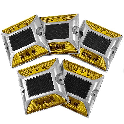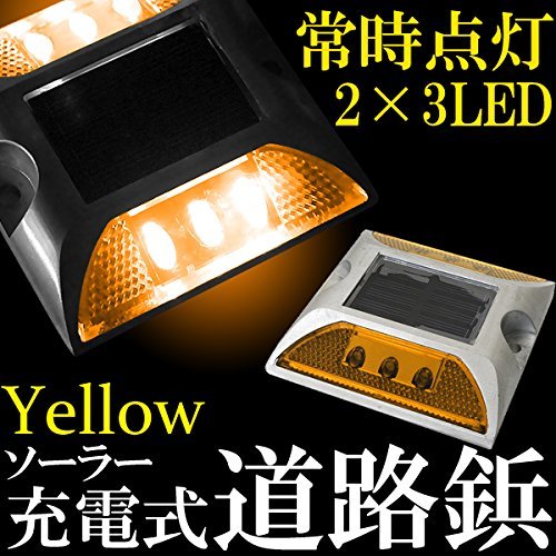 iimono117 ソーラー充電式 LED道路鋲 / センターライン 駐車場 縁石 反射板 視線誘導 (5, 黄)