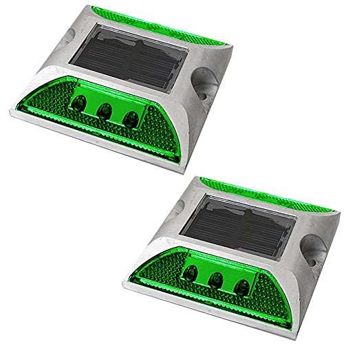 iimono117 ソーラー充電式 LED道路鋲 / センターライン 駐車場 縁石 反射板 視線誘導 (2, 緑)