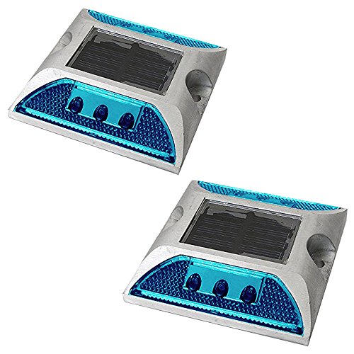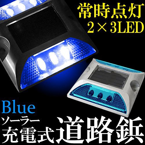iimono117 ソーラー充電式 LED道路鋲/センターライン 駐車場 縁石 反射板 視線誘導 (2, 青)