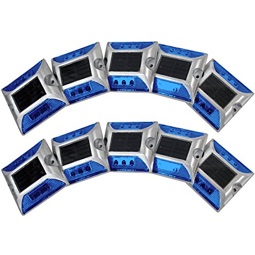 iimono117 ソーラー充電式 LED道路鋲 / センターライン 駐車場 縁石 反射板 視線誘導 (10, 青)
