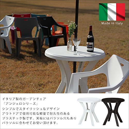 ガーデンテーブル プラスチック 軽量 天板67cm ラウンド 円形 丸型 イタリア パラソル穴 テーブル pc 持ち運び ガーデニング ガーデン アウトドア キャンプ バルコニー レジャー バーベキュー ベランダ 軽い 耐久性 机 屋外 オープン テラス ホワイト