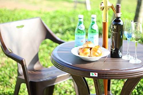 ガーデンテーブル プラスチック 軽量 天板67cm ラウンド 円形 丸型 イタリア パラソル穴 テーブル pc 持ち運び ガーデニング ガーデン アウトドア キャンプ バルコニー レジャー バーベキュー ベランダ 軽い 耐久性 机 屋外 オープン テラス ブラウン