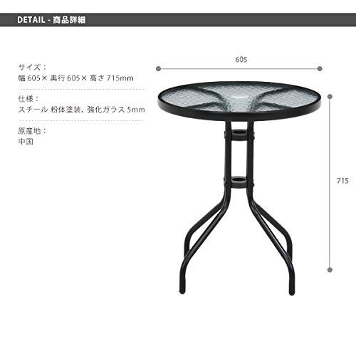シンプルなデザインなので屋外・屋内場所を問わずにお使いいただけます。また、天板ガラスは強化ガラスなので安全です。