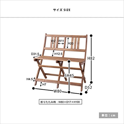 折りたたみ ベンチ 椅子 いす チェアー チェア 天然木 木製 ベランダ テラス ガーデン 庭 バルコニー 折り畳み 折畳み (2人掛け)
